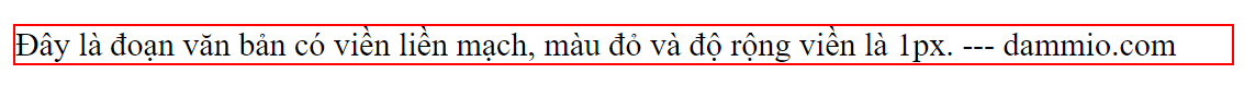 <p>Đây là đoạn văn bản có viền liền mạch, màu đỏ và độ rộng viền là 1px. --- dammio.com</p>