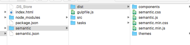 Bạn có thể sao chép tập tin vào dự án cũng như liên kết tập tin .js, .css với mã HTML và bắt đầu dùng Semantic UI. Tuy nhiên, Semantic UI khuyến cáo cách dùng khác như sau. Đầu tiên, cài đặt Gulp và Composer vào server hơn là sao chép tập tin. Công nghệ này sẽ giúp bạn cài đặt không những Semantic UI mà còn có thể kiểm tra các thành phần phụ thuộc và thêm chúng vào nếu bạn chưa cài đặt.